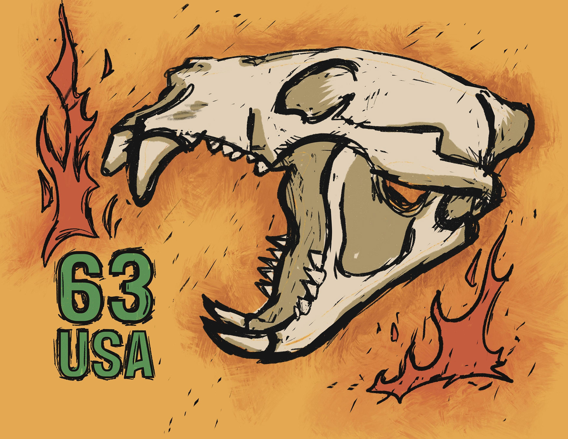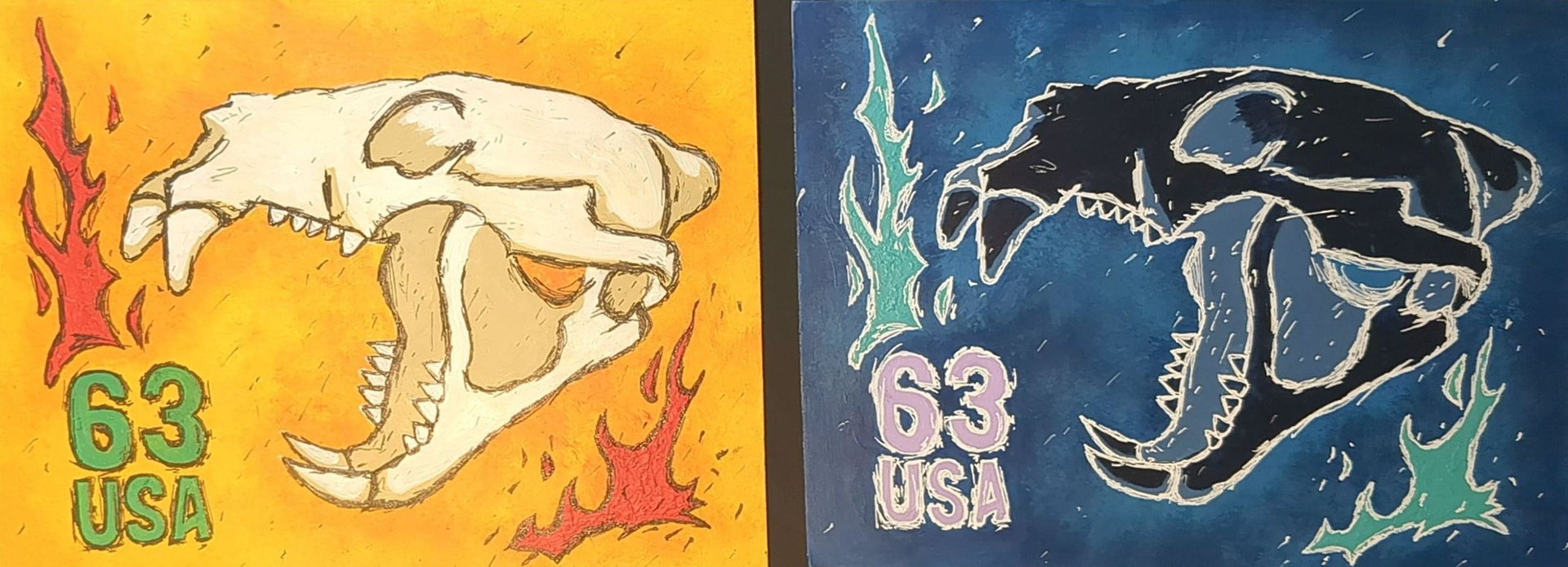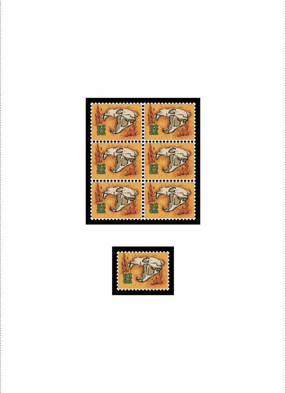 Presented here are magazine page spreads from 2022 and recent stamp project of a jaguar skull in its natural habitat finished in 2024.